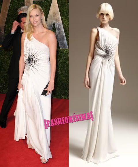 Poniendo a exquisito abrigo su imponente físico aparecía Charlize Theron con un Versace Atelier SS11