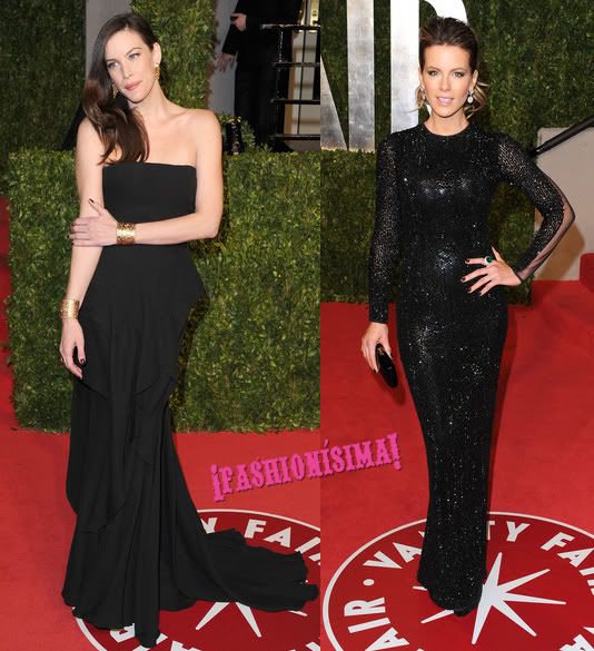 Dueto clásico donde los haya en todo sarao postúmo que se precie: Liv Tyler y Kate Beckinsale. Perfectas de negro